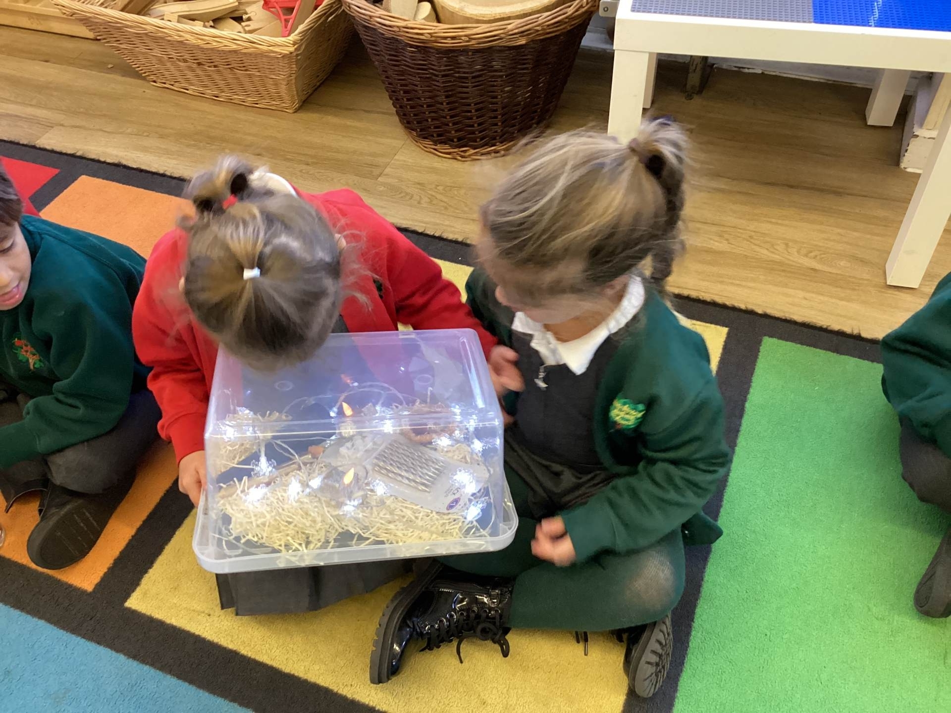 Throughout this project, the children have been finding out about different festivals and religious traditions celebrated all around the world. We began by exploring some interesting objects inside our class curiosity container and talking about what we noticed about them. The children asked lots of questions about the objects inside, sparking their curiosity about what the items might be used for. We used the book 'Little Glow' by Katie Sahota and Harry Woodgate to find out more. Over the course of the project the children have found our about many traditions involving different kinds of lights which help people to celebrate, including Birthdays, Halloween, Diwali, Lunar New Year, Hannukah and Christmas. Finally, the children planned a special birthday party for Lola the Leopard using everything they had learned about special celebrations for the outcome of our project.